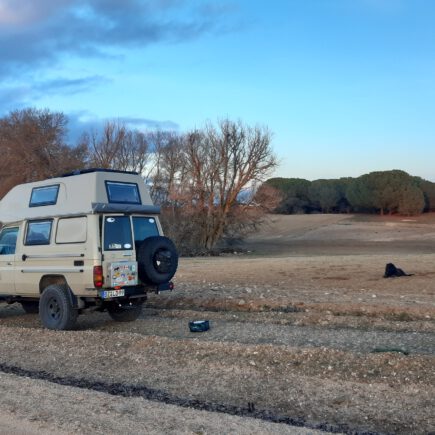Wir haben Glück mit unserem ersten Übernachtungsplatz in Portugal. Kurz hinter der Grenze direkt am Rio Côa befindet sich ein kleiner hübsch aussehender Campingplatz. Dieser hat leider geschlossen, aber daneben …